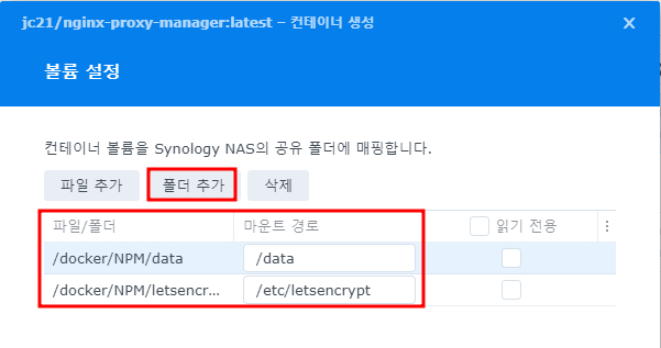1 . Nas docker 폴더에 마운트할 폴더를 생성한다.