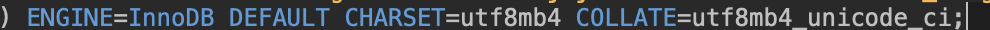 저장된 파일을 열어 아래처럼 인코딩을 utf8로 바꿔준 후 테이블 drop 을 해준다.(utf8mb4 는 이모티콘 포함)