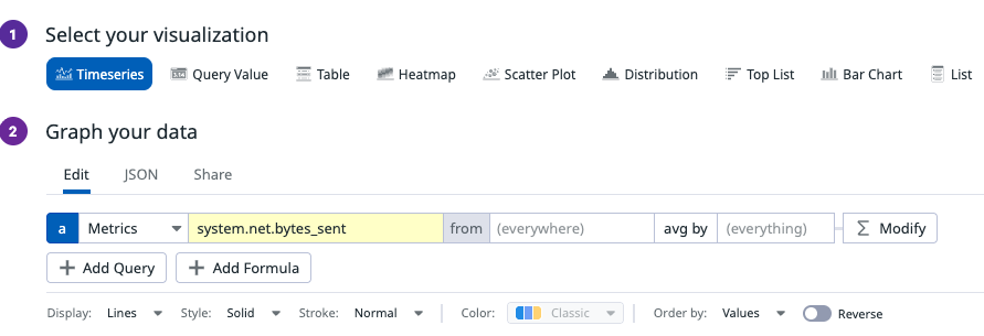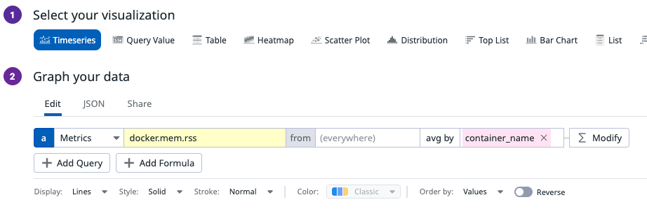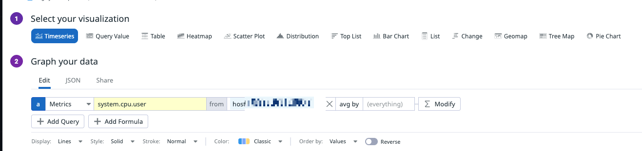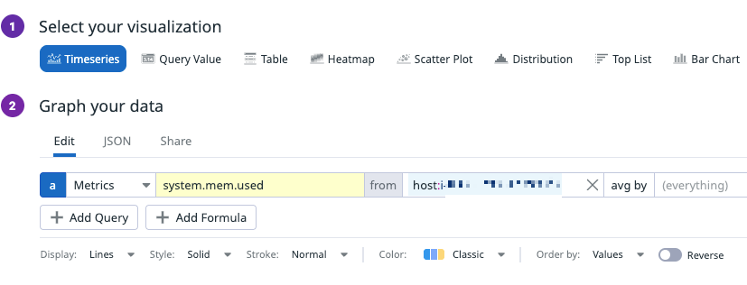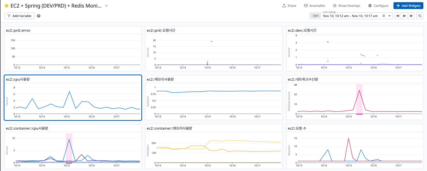 각 위젯(그래프를 나타내 주는 창)은 오른쪽 위 Add Widget 을 통해 만들 수 있다.