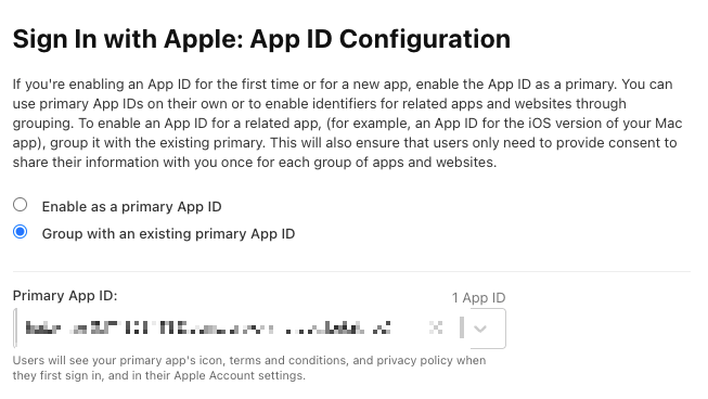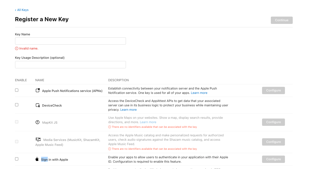 sign in with apple 을 선택하고 Configure 를 눌러 앱을 선택 해주자.