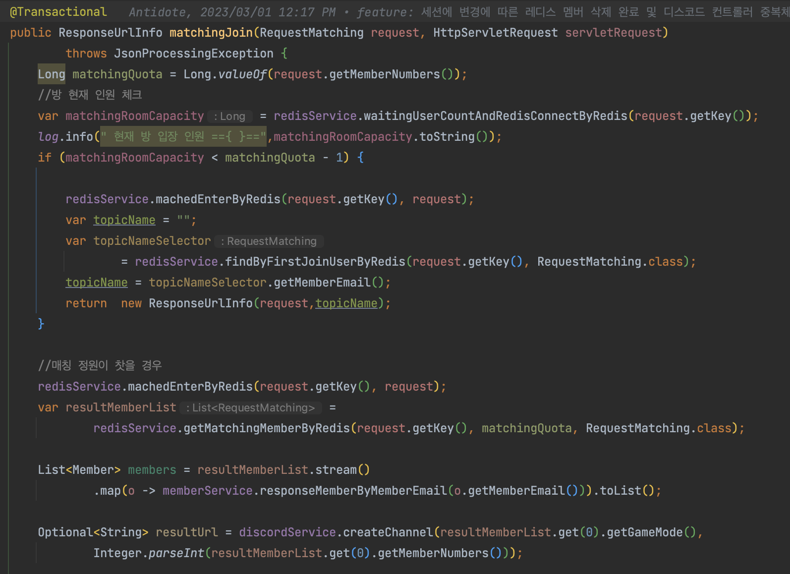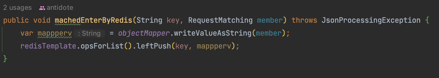 - 매칭서비스는 Queue형태이기 때문에 Redis의 list 를 활용하여 push 해준다