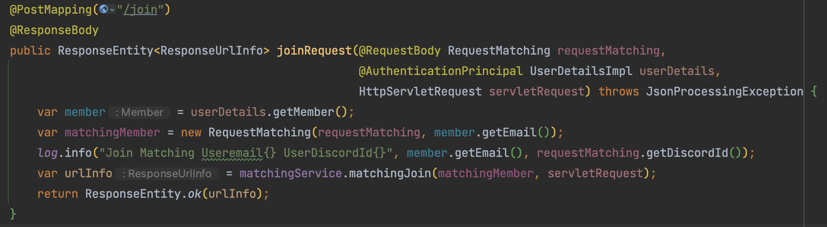 - RequestBody 프론트에서 필요한 정보를 받아와 유저 객체를 만들어 준다.