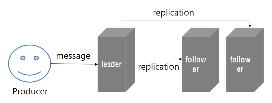 Kafka는 리더(leader)파티션이 팔로워(follower)파티션에 복제를 수행하게 된다.